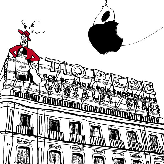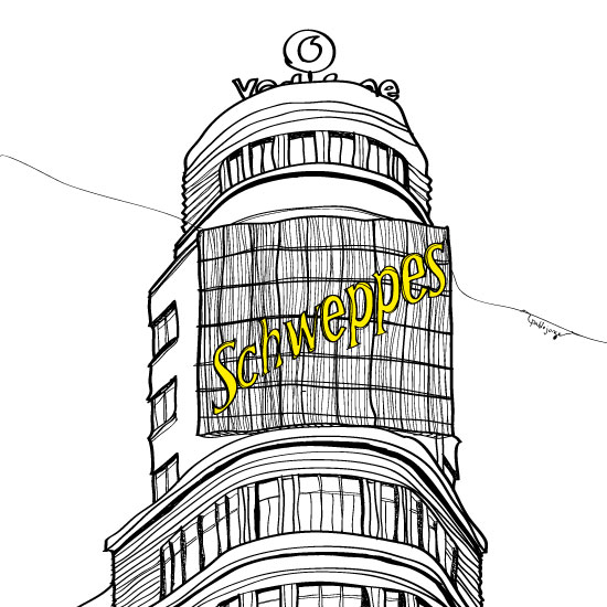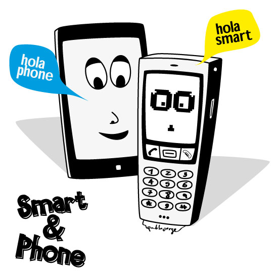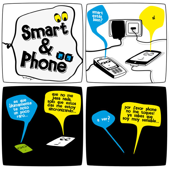 Una serie muy heterogénea sobre líneas negras sobre fondo blanco y un poco de color. Principalmente se trata de referencias a la arquitectura de la ciudad de Madrid aunque también hay otras cosas. Puedes comprar desde aquí postales de estos diseños en Pshop. /// Smart & Phone, lo último ¿A estas alturas de la vida y todavía sin internet en el móvil? "Pues sí, y es que no lo quiero" les contesto a todos los amigos y conocidos que me hacen esta pregunta. Siempre, y ahora más que nunca se hace patente la franja social que abren las modas entre las personas. Hoy más que nunca, cada vez quedamos menos en esta franja. Así lo refleja la relación entre estos dos personajes Smart & Phone juntos pero a la vez separados por una diferencia: uno de ellos ya pasó de moda. ¿seguirán juntos? ¿qué pasará cuando smart pase de moda? Yo de momento casa vez me veo más cerca del sarphone, un aparato que cambiará mi vida y me obligará a dedicar parte de mi tiempo a otras empresas. Aprovecho para dejaros un enlace a un monólogo de Cristina Fenóllar sobre el tema.